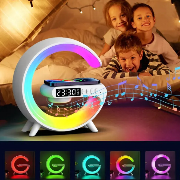 Descoperiti confortul si versatilitatea unei solutii all-in-one cu lampa RGB, incarcator wireless si boxa Bluetooth - tot ce aveti nevoie pentru o experienta de relaxare si divertisment completa intr-un singur dispozitiv.