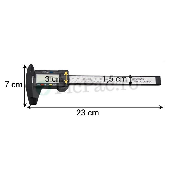 - Are butoane de ON/OFF, de calibrare si resetare.- Poate masura o distanta intre 0 si 150 mm cu o acuratete de 0,02 mm.- Masoara atat interiorul cat si adancimea.- Practic, iti spune chiar el ce ai de facut si te ajuta sa citesti ceea ce ai masurat.- Unitatile de masura sunt exprimate in mm sau inch, in functie de nevoie. - Se poate folosi si de catre profesionisti, in constructii si instalatii, fiind foarte rezistent.