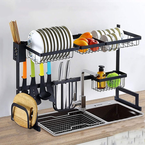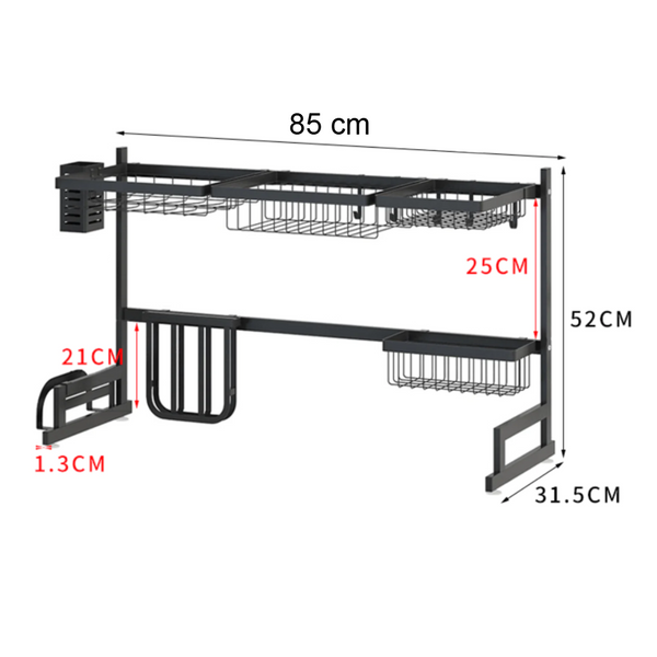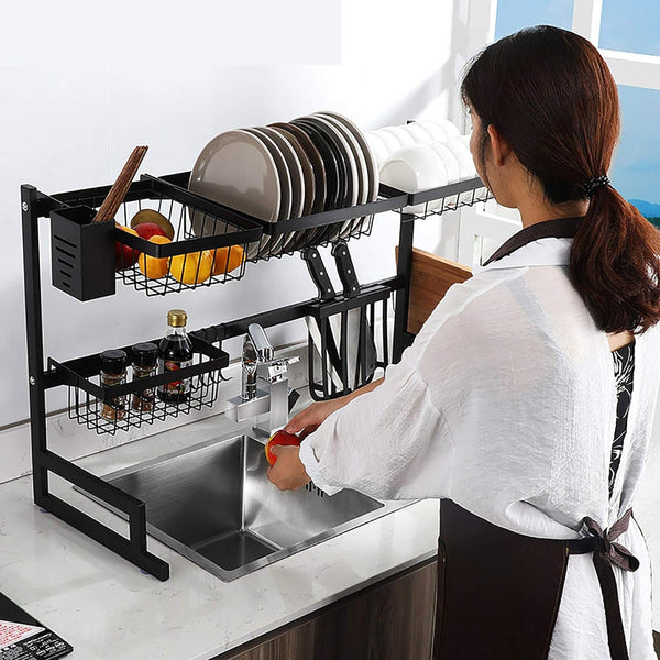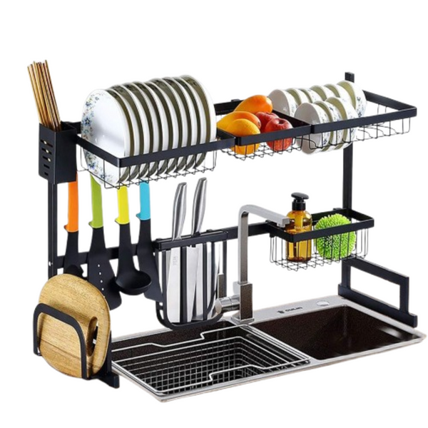 Construit din materiale durabile și rezistente la coroziune, suportul poate susține farfurii, pahare, tacâmuri și ustensile de bucătărie, oferindu-ți mai mult loc pe blatul de lucru.