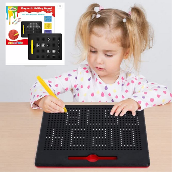 O tablă magnetică de desen cu stilou și 380 de bile magnetice este un instrument creativ și educativ care încurajează imaginația și dezvoltă abilitățile artistice ale copiilor. Această tablă oferă o modalitate interactivă și distractivă de a desena, scrie și crea diverse modele folosind bilele magnetice și stiloul special inclus.