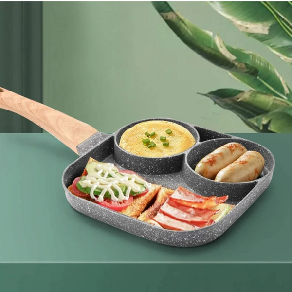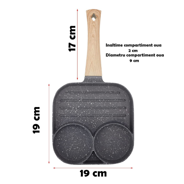 O tigaie antiaderenta este un instrument excelent pentru a gati mai multe feluri de mancare in acelasi timp, fara a fi nevoie sa folositi mai multe tigai. Materialul din aluminiu asigura o distributie uniforma a caldurii, ceea ce face mai usor sa gatiti fiecare fel de mancare la perfectie. De asemenea, tigaia este prevazuta cu un strat de acoperire antiaderent, care face ca mancarea sa nu se lipeasca si sa fie mai usor de curatat. In plus, compartimentele permit sa gatiti diferite feluri de mancare fara a se amesteca. Aceasta tigaie este ideala pentru persoanele care doresc sa gaseasca o modalitate mai eficienta si mai rapida de a gati mancarea preferata fara a fi nevoie sa foloseasca mai multe tigai.
