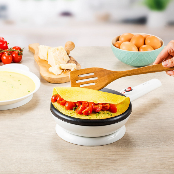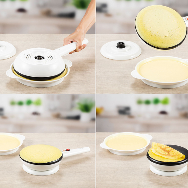 Surprindeti-i pe cei dragi cu clatite perfecte pentru micul dejun, pranz sau cina. Pur si simplu pregatiti aluatul si incalziti aparatul. Preparati si gatiti clatite perfecte, subtiri si rotunde in cateva minute. Umpleti cu fructe si iaurt pentru un mic dejun special, cu branza si sunca pentru o gustare la pranz sau creati clatite personalizate pentru oaspeti la cina, cu o gama de toppinguri dulci si sarate; un deliciu pentru toata lumea!
