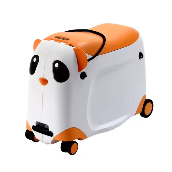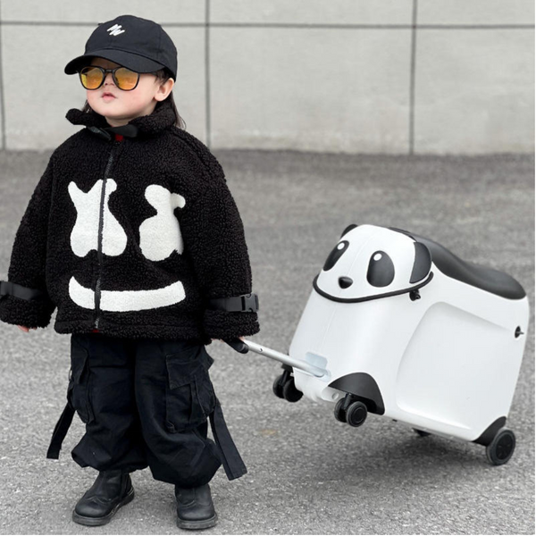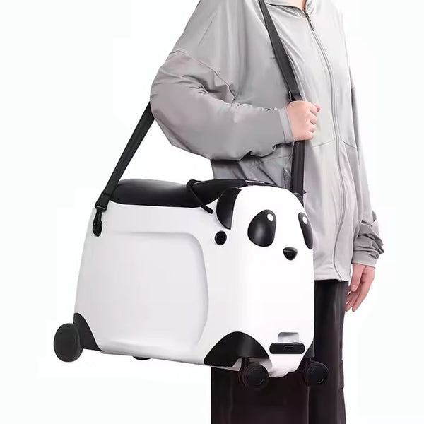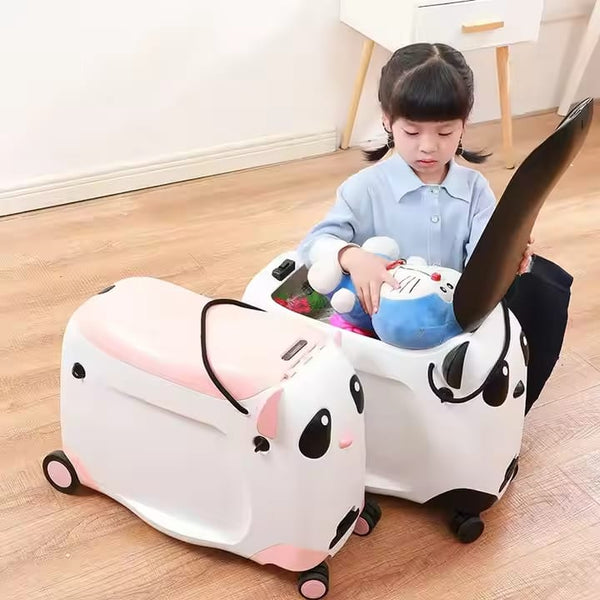 Valiză pentru Copii, Model Panda, cu Roți, Funcție de Scaun și Depozitare