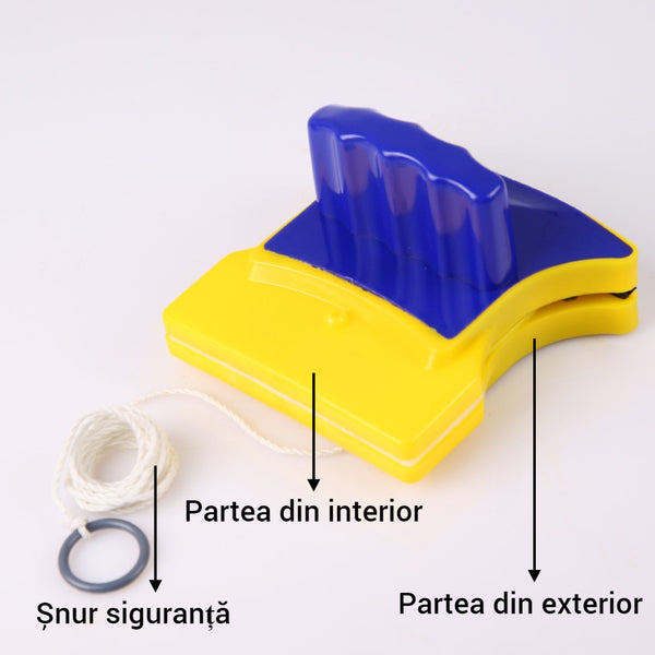 - Sunt doua aparate identice, cu un burete, o banda de silicon, care curata perfect geamul si un magnet puternic care le tine unite.