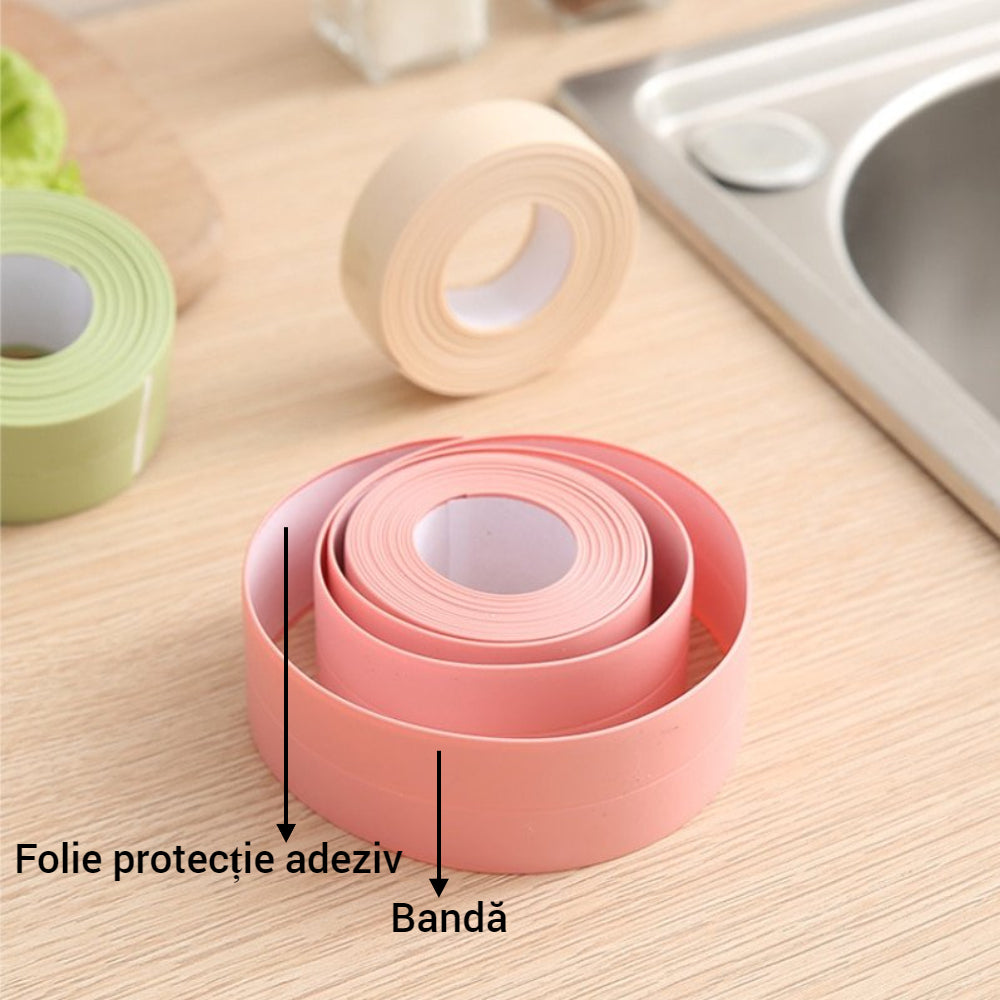 Această banda de etansare impermeabila are o suprafața neteda si frumoasa si asigura o etansare de lunga durata, astfel incat poate fi utilizata nu numai în bucatarii, ci si ca linie de finisare pentru domiciliu.