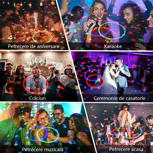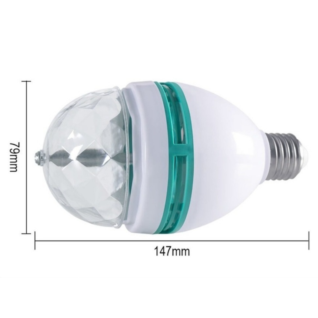 Luminile proiectate sunt din 3 LED-uri de 1W fiecare si difuzeaza de pe toata suprafata becului intr-o rotatie continua. Efectele sunt extraordinare. Aparatul este excelent pentru utilizare in diverse evenimente de familie, petreceri, ringuri de dans, baruri, discoteci, cluburi, ambient, etc.