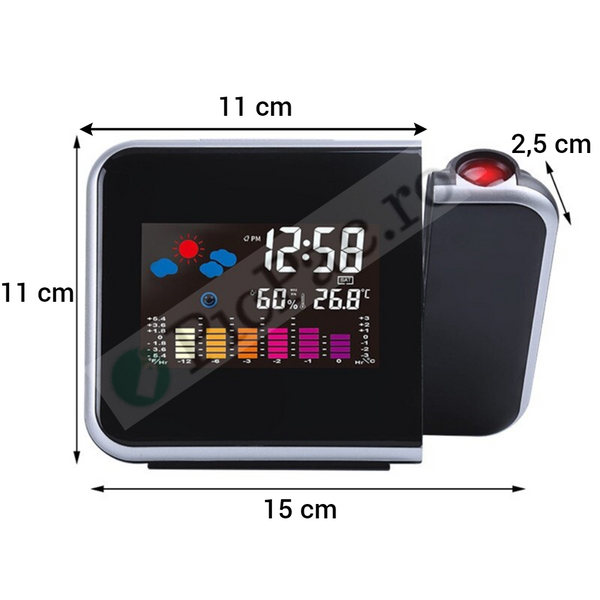 - Ceasul proiecteaza ora pe perete sau pe tavan, cu posibilitatea reglarii unghiului de proiectie.