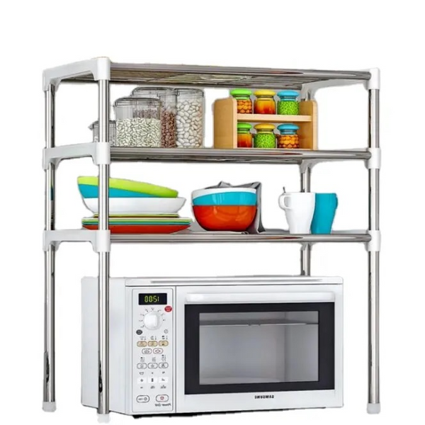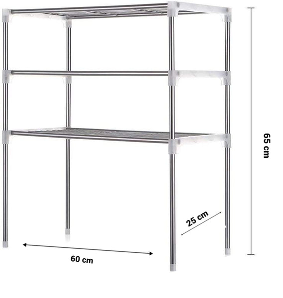Raftul este ideal pentru spatii mici, compus din 3 compartimente. Raftul multifunctional este realizat din material plastic si otel inoxidabil. Raftul 3 in1 poate fi asamblat in mai multe moduri si poate fi utilizat atat in bucatarie cat si pentru depozitarea incaltamintei.