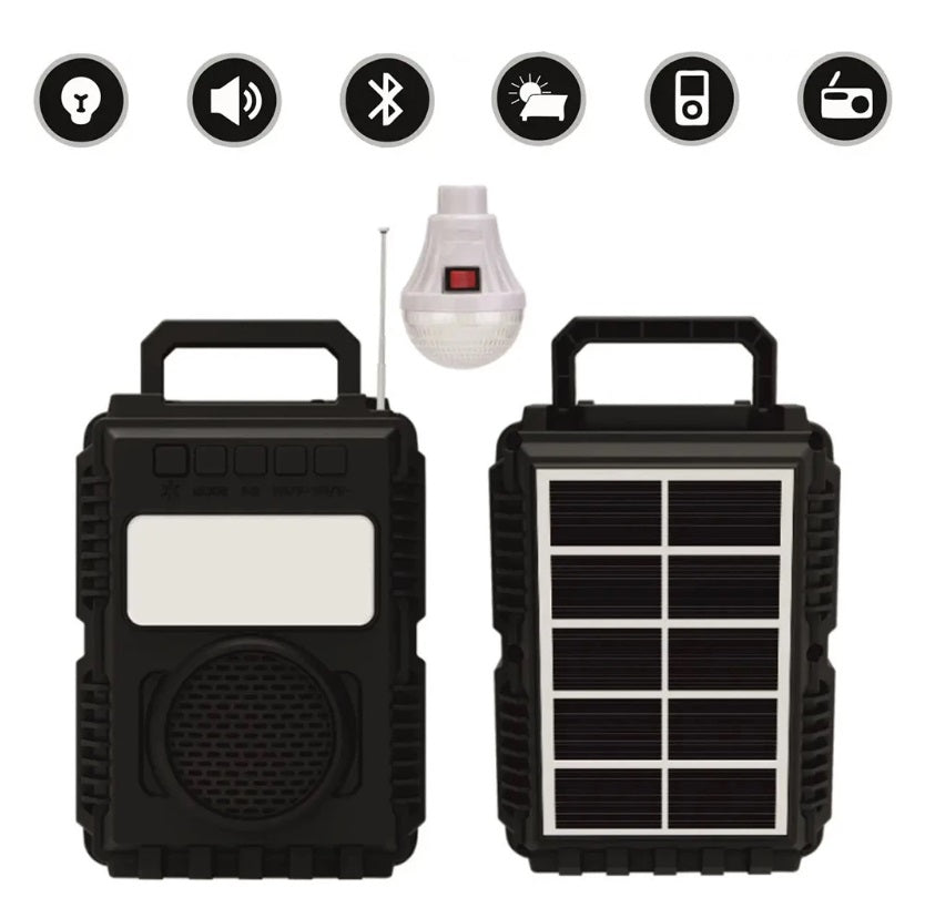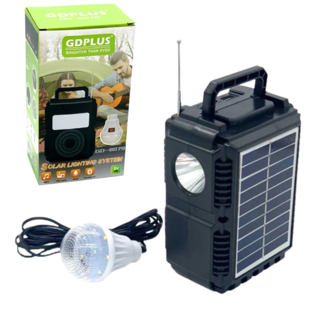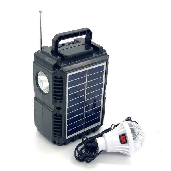 Fie ca sunteti intr-o zona izolata, in camping sau in timpul unei pene de curent, kit-ul solar va ofera toate facilitatile de care aveti nevoie: iluminat portabil prin intermediul becului cu LED SMD, lampa LED, incarcarea telefoanelor mobile si a altor dispozitive de la acumulatorul de 6V inclus in sistem.