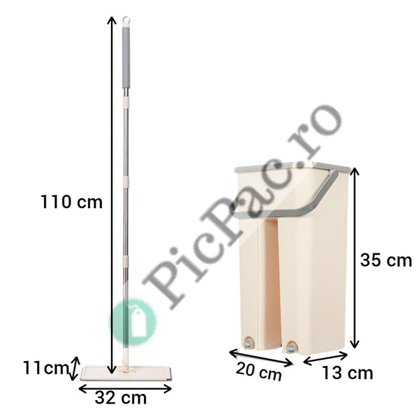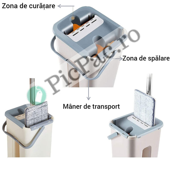 Beneficii: - Mopul curata repede si eficient si functioneaza precum un magnet care atrage murdaria, este extrem de absorbant, dar in acelasi timp delicat cu suprafetele tale si are un maner de aluminiu, ce se poate ajusta. - Partea atasata ( rezerva de mop din microfibre ) poate fi usor demontata si curatata in masina de spalat, la o temperatura de maximum 60 de grade. - Manerul esre prevazut cu protectie anti-alunecare si frecare. - Ofera rezultate excelente pe geamuri, colturi greu accesibile, podele si gresie. - Mop plat, usor de manevrat, asigura o mai buna flexibilitate si precizie pentru o curatare eficienta a unor variate tipuri de suprafete, precum parchet, linoleum, gresie, ceramic etc. - Cuva pentru curatare serveste clatirii si curatarii automate a mopului - Sistemul de perii asigura curatarea si stoarcerea apei murdare din mop - Periile tip scrub de pe suprafata mopului inlatura orice tip de murdarie: gunoi, praf, noroi, par etc. - Manerul din spuma asigura confort in utilizarea mopului, chiar si in zonele mai dificile, precum colturi sau crapaturi