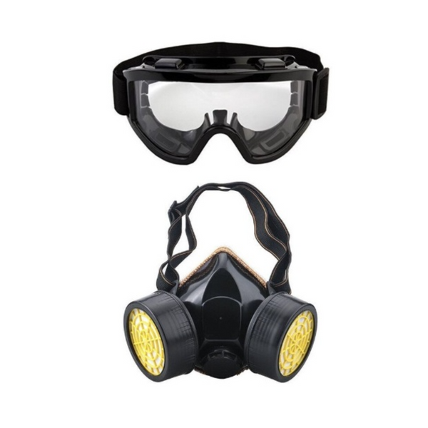 Set ochelari si masca de protectie cu 2 filtre de carbon activ, pentru lucru in mediu chimic, vapori vopsea sau praf, este excelent pentru filtrarea particulelor mici de praf, a fumului, a vaporilor rezultate in urma pulverizarii vopselelor, vapori organici (cu temperatura de fierbere de peste 65 grade C) sau a substantelor chimice de toxicitate scazuta pulverizate cu ajutorul unui atomizor sau diverse echipamente.