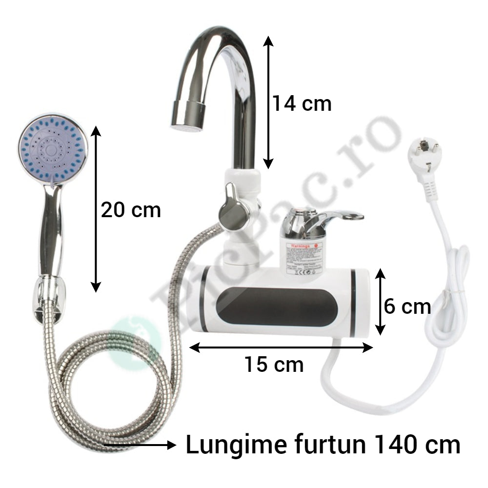 - Arata ca un robinet normal, dar in interior are un element ce incalzeste apa la o temperatura de pana la 60° C.