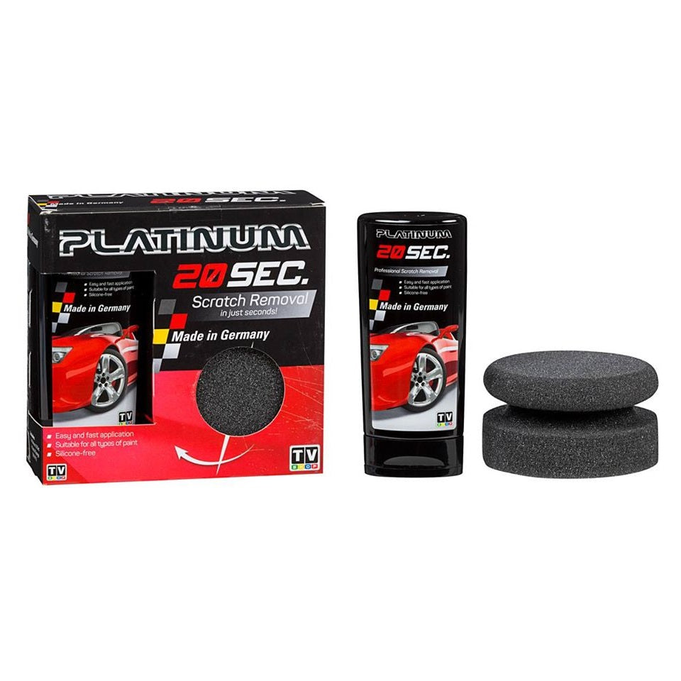 Plin de mandrie, va prezentam rezultatul multor ani de cercetare, fantasticul Platinum 20 seconds! Acesta indeparteaza zgarieturile de suprafata din lac in timp record, fara a avea nevoie de masini sau scule speciale! Si ce este cel mai bine? Nu aveti nevoie de cunostinte de specialitate, toata lumea il poate folosi cu succes!