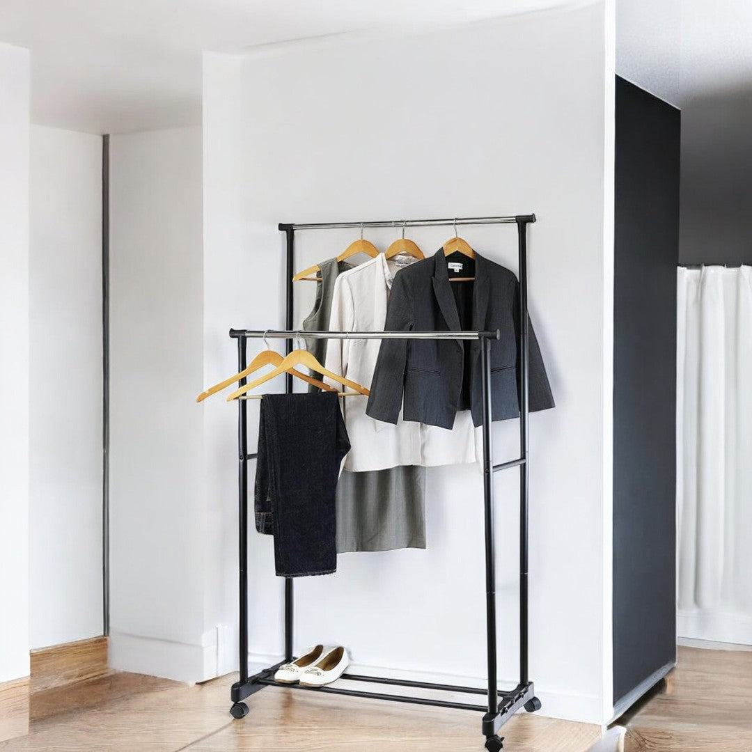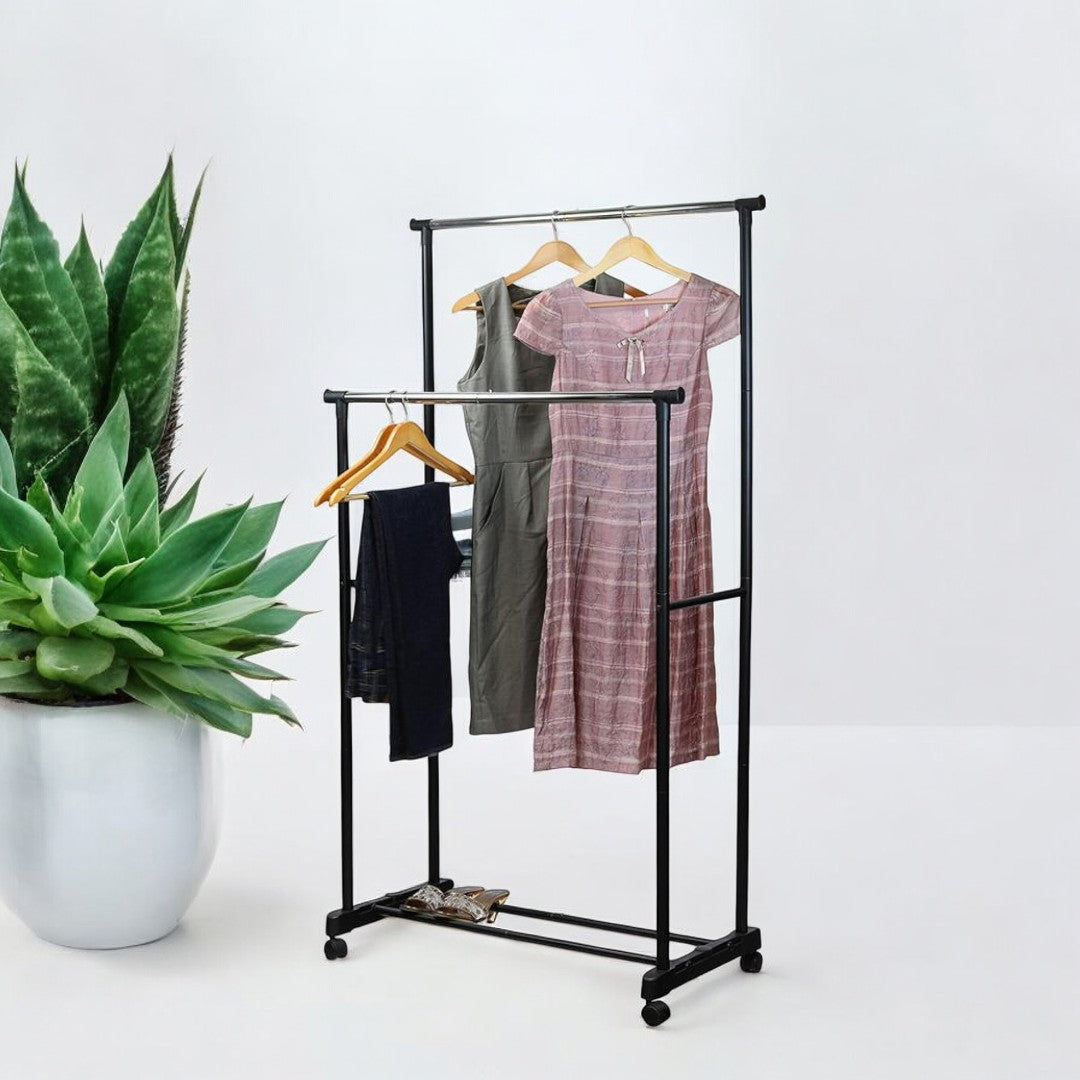 Ai nevoie de mai mult spațiu pentru depozitarea hainelor sau sifonierul tău este prea mic? Suportul pentru umerașe cu înălțime reglabilă este soluția perfectă pentru organizarea eficientă a hainelor, fie că ești acasă, în magazin sau ai un spațiu de depozitare limitat. Cu un design robust și mobilitate crescută, acest suport îți va oferi flexibilitate și un plus de ordine în garderoba ta.