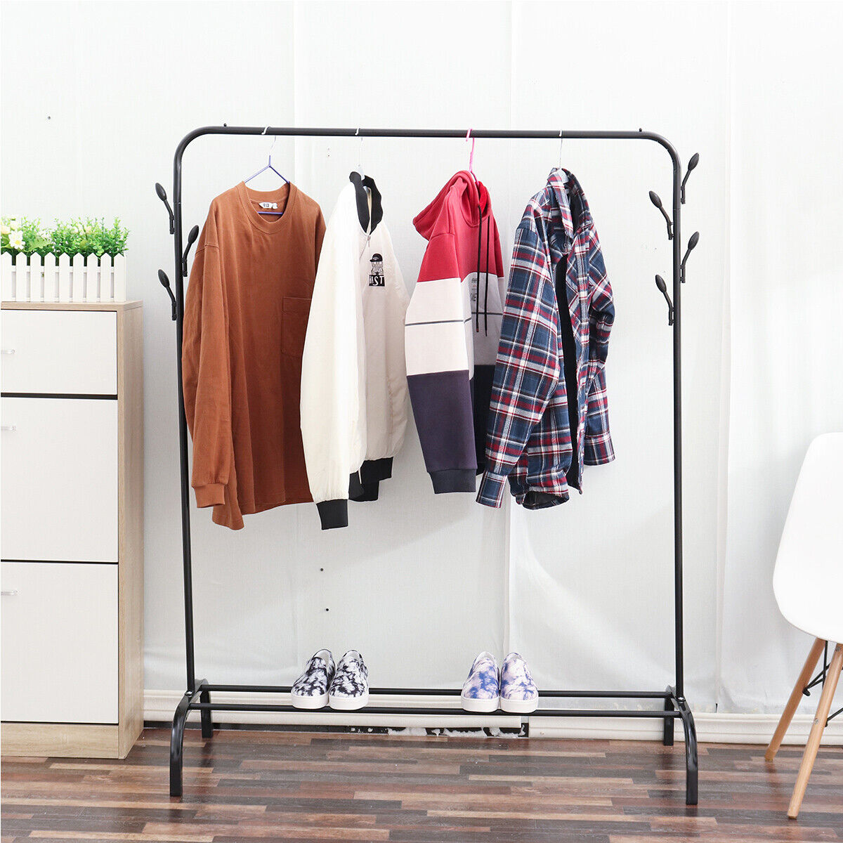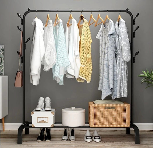 Cand vine vorba sa iti tii hainele in ordine, provocarea este mare, caci mereu se aduna in sifonier o multime de lucruri pe care, invariabil, nu mai stii cum sa le organizezi. Un suport pentru umerase se poate dovedi o investitie inteleapta in acest caz, iar unul dintre cele mai interesante produse pe care ti le putem propune este suportul de umerase cu cadru metalic si cuier lateral, un model pe o structura metalica usoara, ideal pentru umerase, pantofi si accesorii. Il poti depozita in dressing, in boxa, in pod sau chiar in balconul inchis.