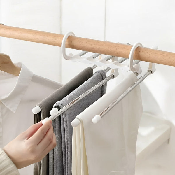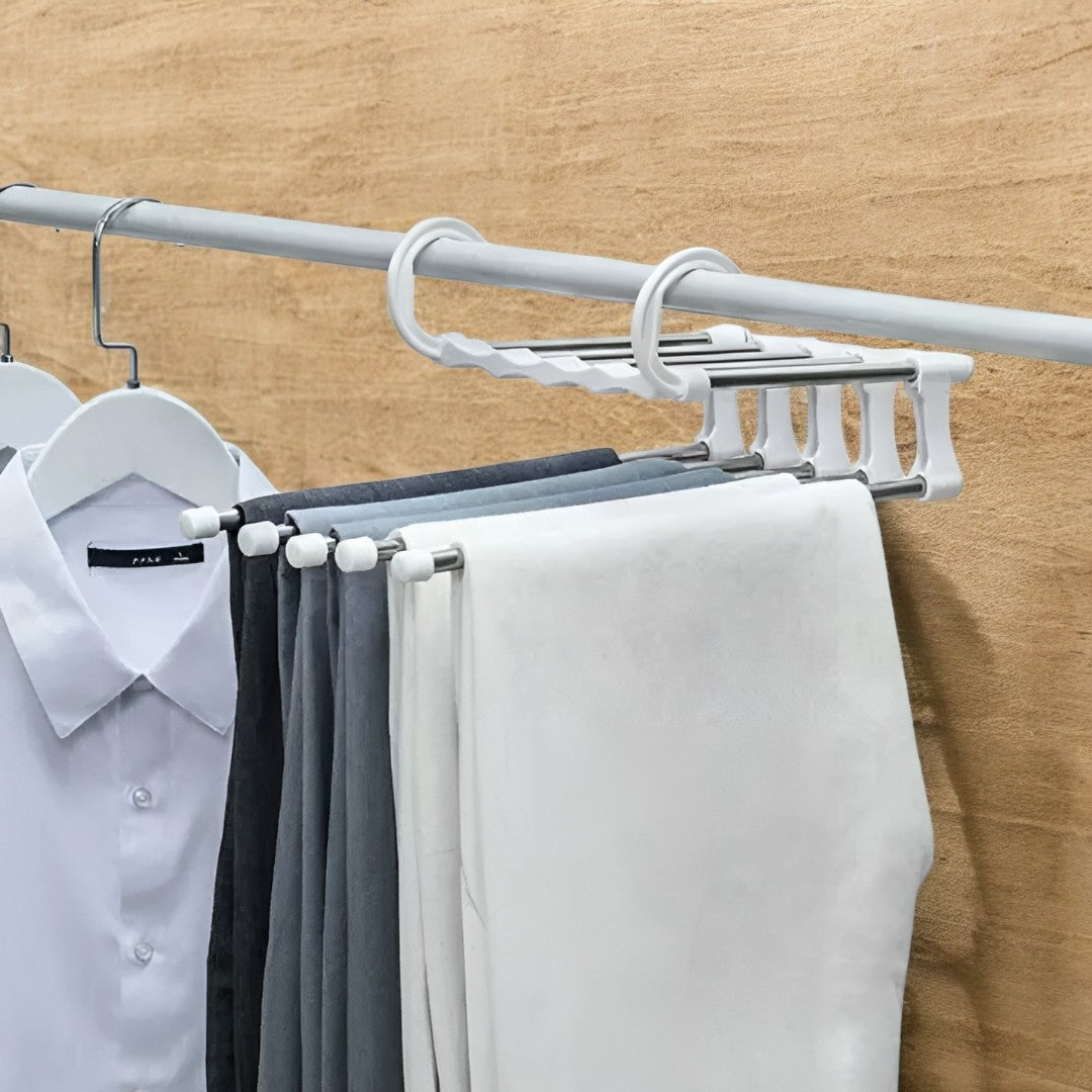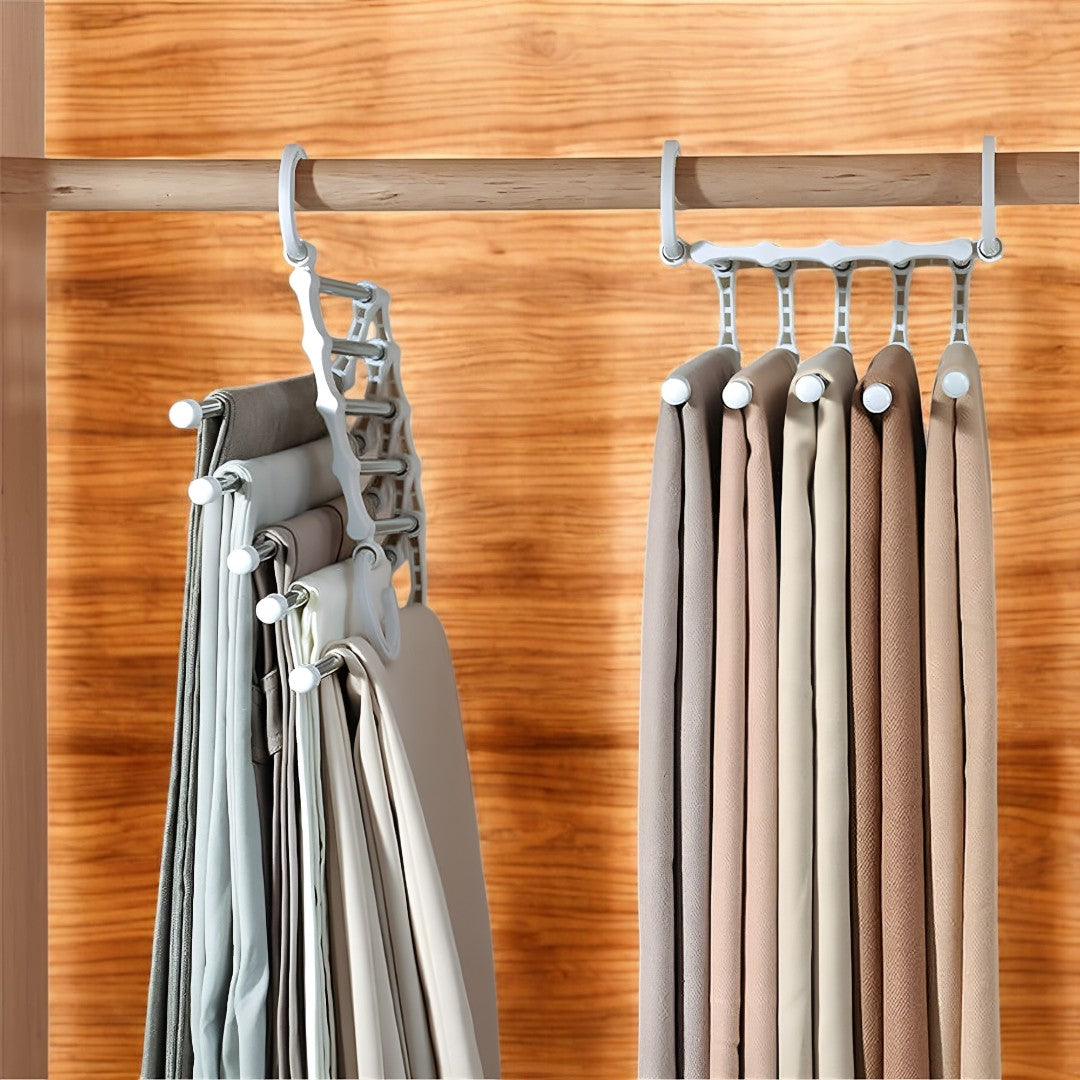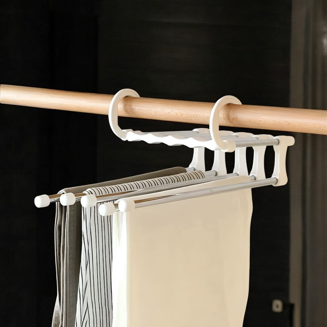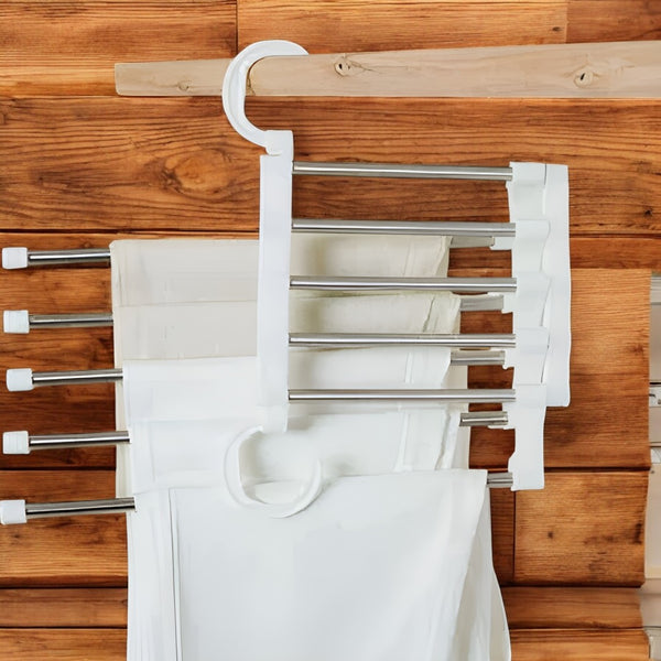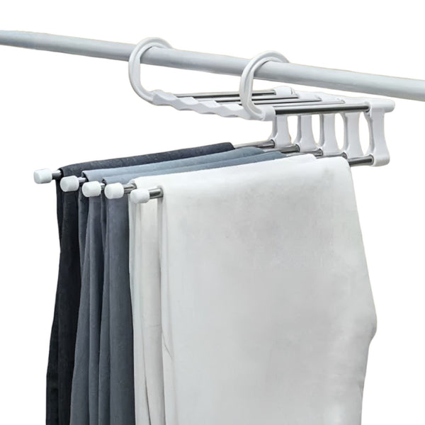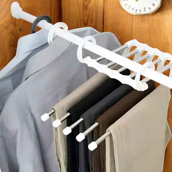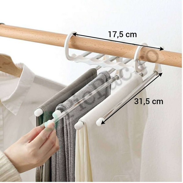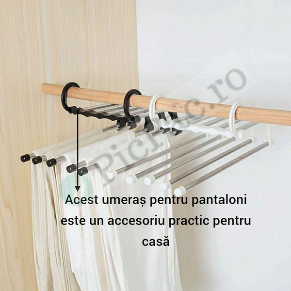 - Te ajuta sa gasesti usor pantalonii, deoarece tijele de sustinere sunt mobile si pot fi deplasate, ceea ce face mai usoara atarnarea pantalonilor.