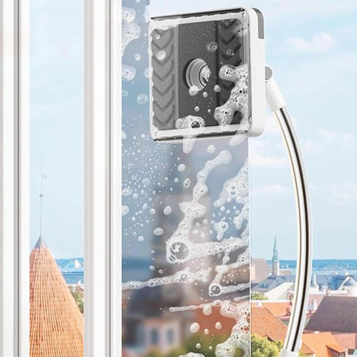 Stergator telescopic și flexibil pentru geamuri, curbat, ideal pentru stergerea geamurilor la inaltime, cu 2 lavete incluse