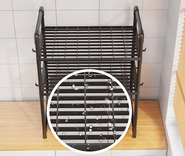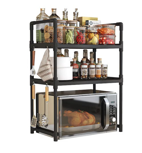 Raftul multifuncțional pentru bucătărie este soluția ideală pentru organizarea eficientă a spațiului. Cu un design modern și structura robustă, acest raft oferă suficient spațiu pentru depozitarea electrocasnicelor, condimentelor, sticlelor sau ustensilelor de bucătărie. Cele doua etaje permit o organizare clară și accesibilă, iar suporturile laterale sunt perfecte pentru agățarea ustensilelor mici. Este potrivit pentru cuptoare cu microunde, toastere sau alte aparate de dimensiuni similare.