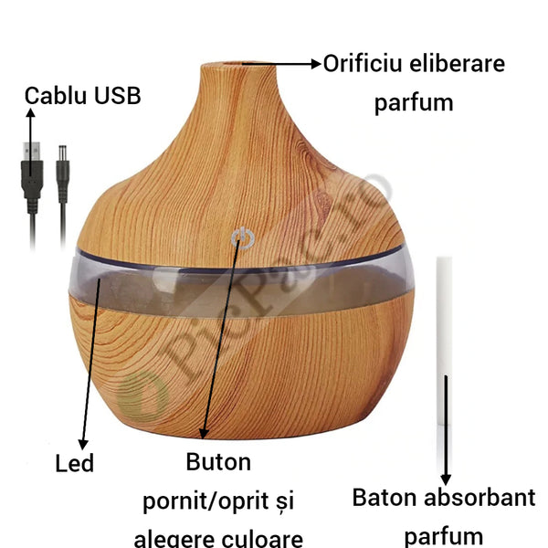 - Iluminarea Led vine in completarea mirosului cu un joc de 7 culori.